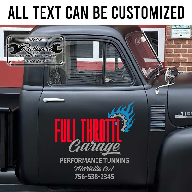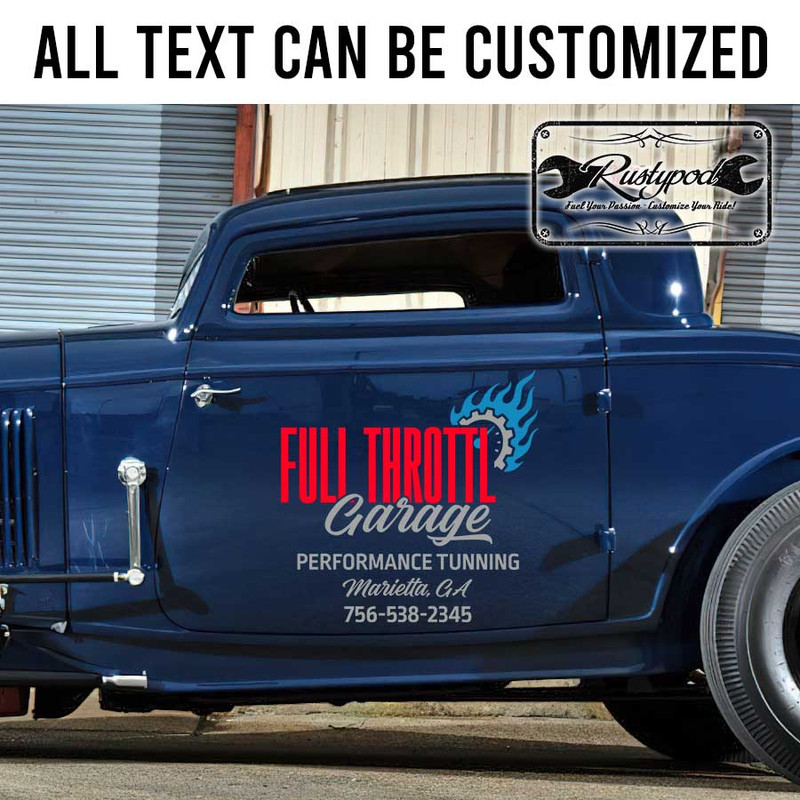 personalized performance tuning garage door art hot rod lettering rat rod door sign sticker 13345