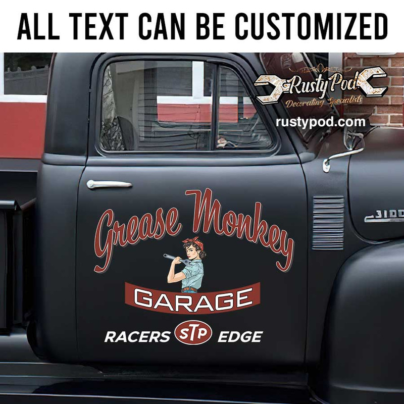 personalized pin up girl garage sign stp door sign kustom kulture old school lettering sticker 12527