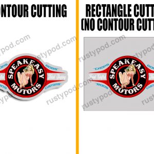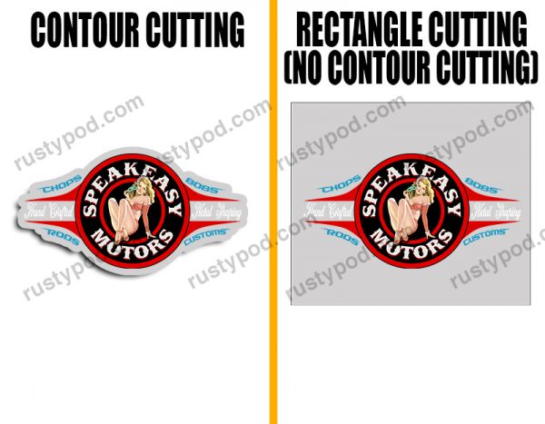 - Contour Cutting/Trim means that the decals are printed with an outline hugging the design. Meanwhile, with no contour cut, the outline will be a rectangle instead.