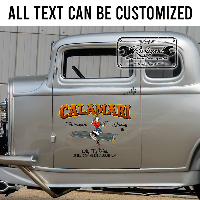 personalized pin up girl welding company sign iron work lettering sign sticker utilizes advanced UV printing technology on high-quality vinyl panels, ensuring vibrant and long-lasting prints.