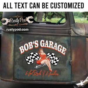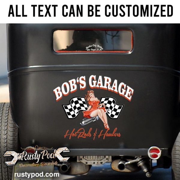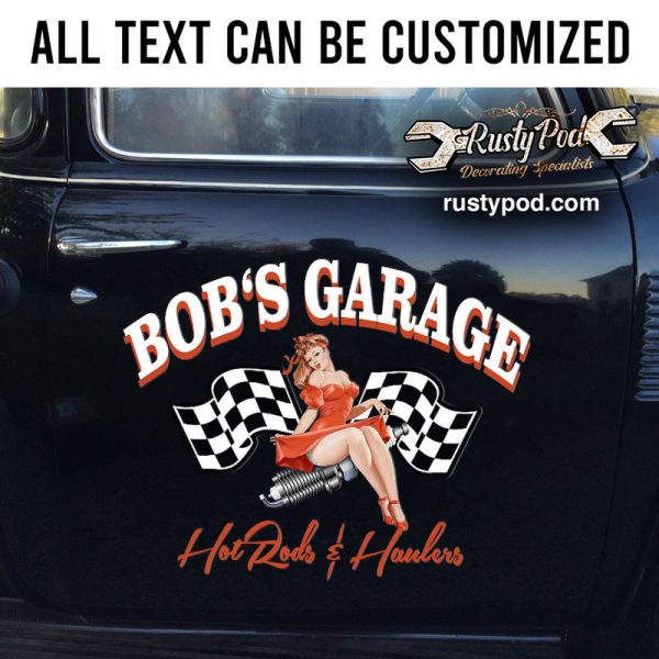 Be the first to review “personalized pin up girl with checker flag lettering vinyl sticker 10522”
