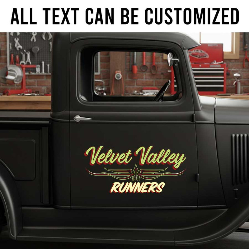 personalized pinstriping art arrow lettering decal hot rod lettering decal rat rod door sign kustom kulture sticker is a premium decal made with UV printing technology on high-quality vinyl panels. It’s built for high durability, resists scratches and fading, and stands up well against sunlight, rain, and other environmental impacts. The adhesive is designed to be safe for vehicle surfaces and makes application quick and easy on cars, motorbikes, glass doors, and more—great for expressing personality or advertising brands.