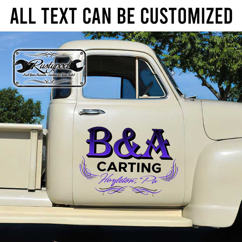 personalized pinstriping art truck graphics rat rod door art hot rod garage lettering sticker uses advanced UV printing technology on durable vinyl panels.