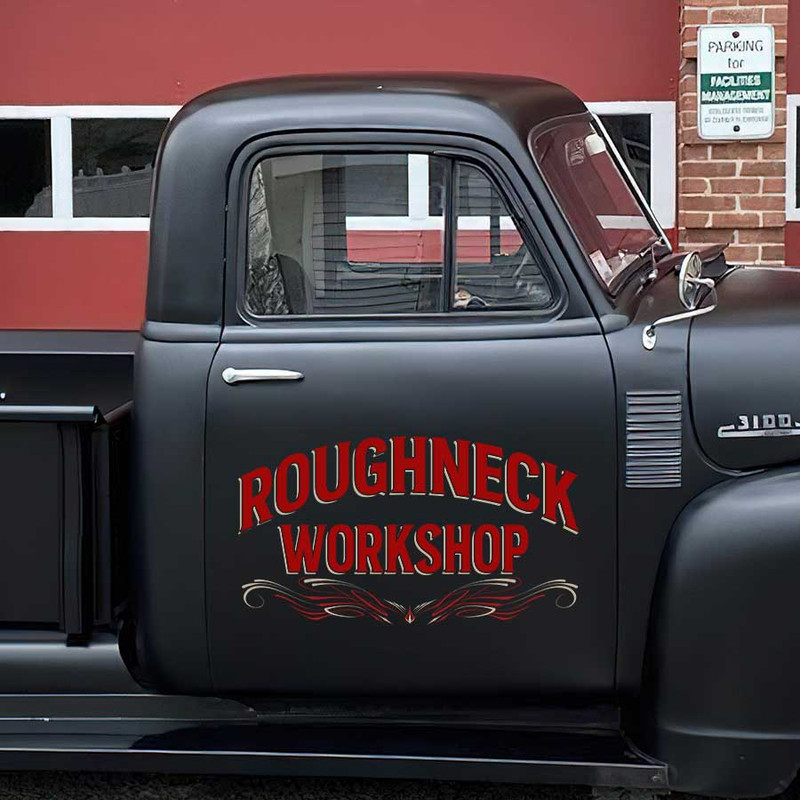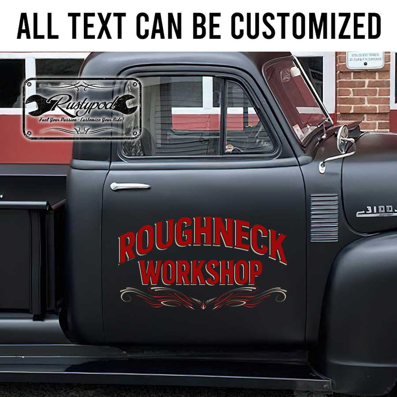 personalized pinstriping art work shop sign decal garage sign decal hot rod lettering sticker utilizes advanced UV printing technology on durable vinyl panels, ensuring high durability and exceptional resistance to environmental impacts. Our stickers are safe for vehicle surfaces and incredibly easy to apply. Each design is fully customizable to meet your unique requirements, and you can choose the contour cut option to eliminate excess decal, giving your sticker a seamless, painted-on look. These decals are suitable for cars, motorbikes, glass doors, and more—perfect for expressing your personality or advertising your brand.
