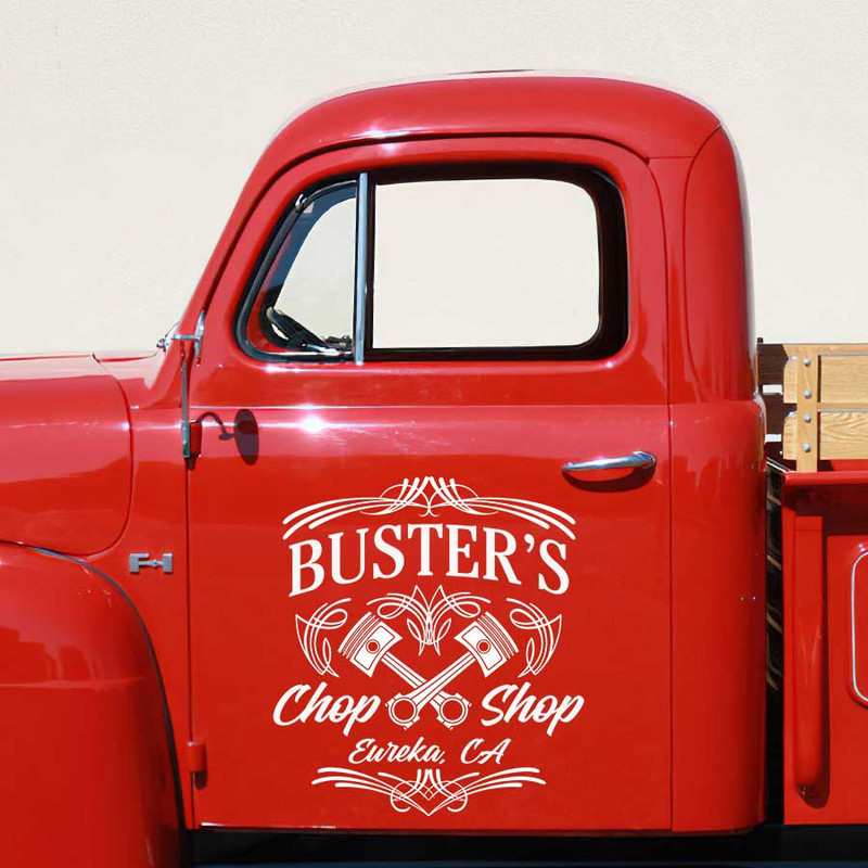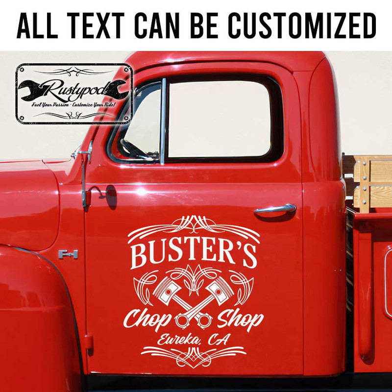 personalized pinstriping crossing piston shop shop lettering sign hot rod garage kustom kulture sticker 13349