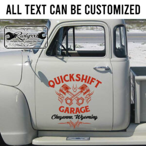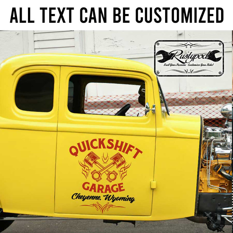personalized pinstriping crossing piston speed shop door art garage sign kustom kulture sticker uses advanced UV printing technology on high-quality vinyl panels, ensuring vivid colors and exceptional durability.