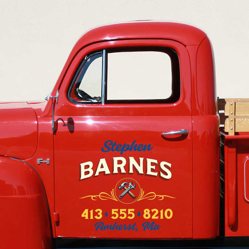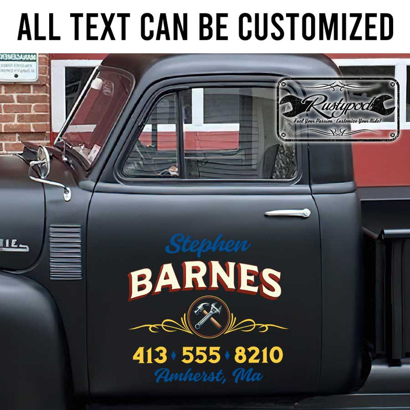 personalized pinstriping lettering garage lettering shop truck door sign speed shop door art kustom kulture hammer and wrench logo sticker uses advanced UV printing technology on premium vinyl panels for vibrant, crisp details and a finish that stands out.