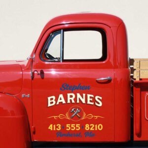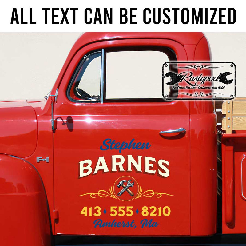 personalized pinstriping lettering garage lettering shop truck door sign speed shop door art kustom kulture hammer and wrench logo sticker 13642