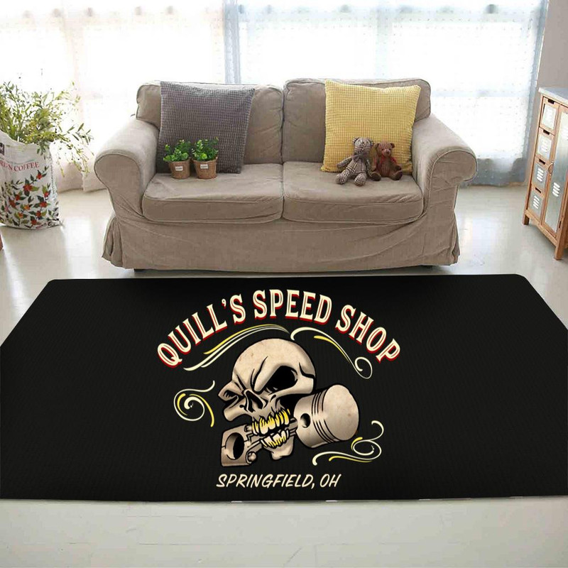 personalized pinstriping skull hot rod lettering rug 10655