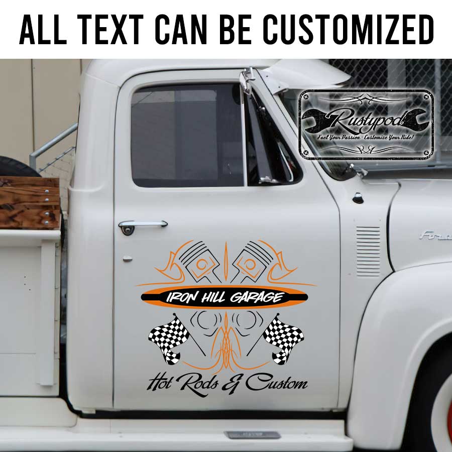 Personalized piston pinstriping and checker flag lettering vinyl sticker is a great way to show your personality and make your car stand out. There are tons of different styles and colors to choose from, so you can find the one that’s perfect for your style. They are easy to apply and remove so you can change them.