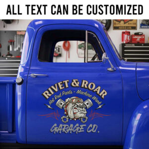 personalized pitbull and piston logo lettering decal hot rod decal car lettering decal kustom kulture sticker uses advanced UV printing technology on durable vinyl panels.