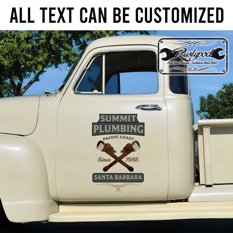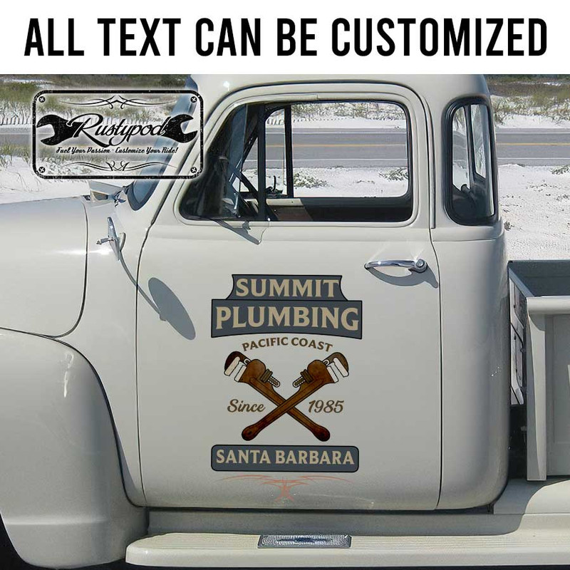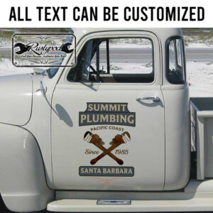 personalized plumbing company lettering door sign rat rod door sign hot rod lettering kustom kulture sticker is crafted using UV printing technology on high-quality vinyl panels, ensuring long-lasting durability and resistance to environmental factors. This product is safe for vehicle surfaces and easy to apply. Our designs can be customized to your preferences, and you can choose a contour cut option that eliminates excess decal, giving the appearance of a painted design. These decals are suitable for application on cars, motorbikes, glass doors, and more, perfect for expressing personality or promoting your brand.