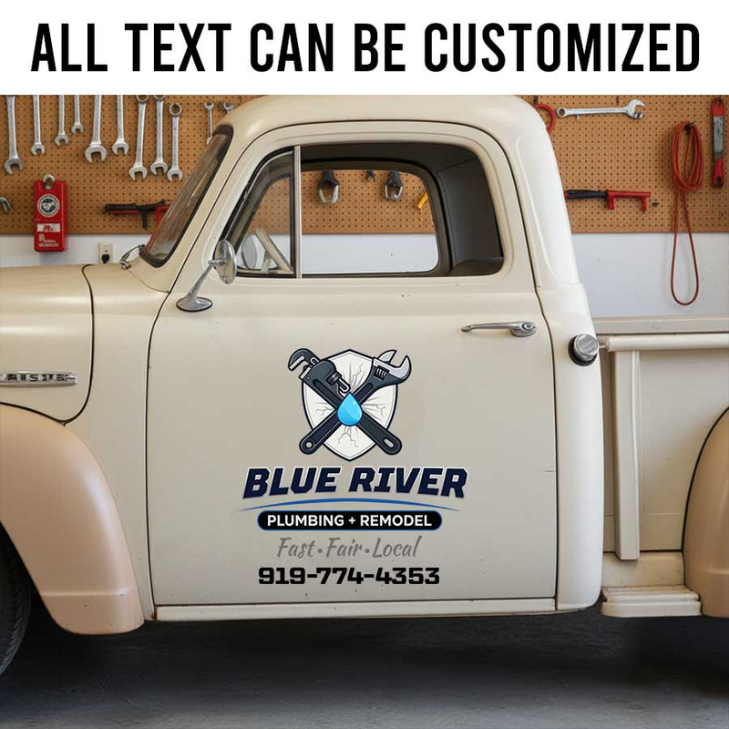 personalized plumbing company sign decal vehicle graphics decal kustom kulture sticker uses advanced UV printing technology on durable vinyl panels.