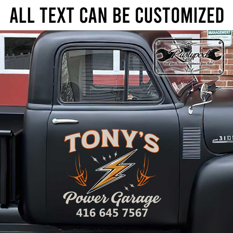 personalized power garage lettering thunder bolt lettering performance garage sticker 13324