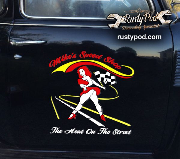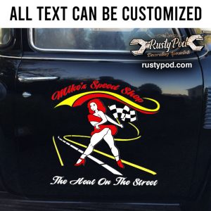 Be the first to review “personalized racing girl hot rod shop lettering vinyl sticker 10460”