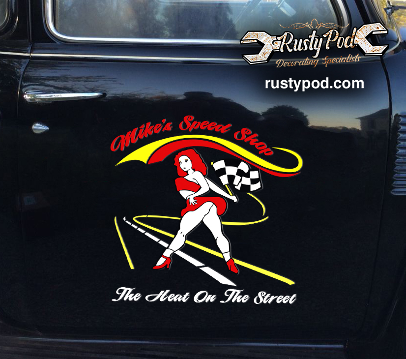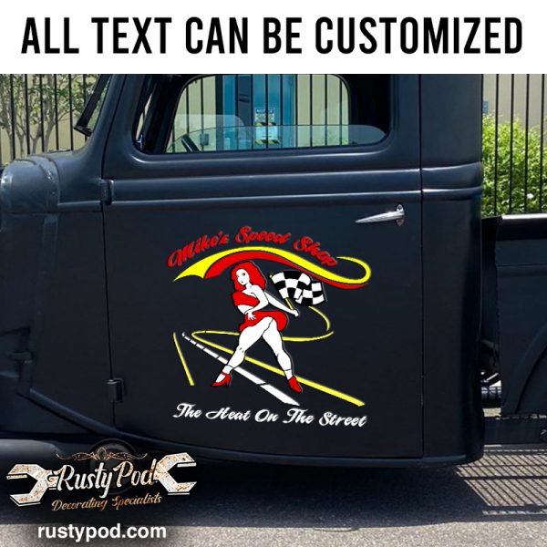 personalized racing girl hot rod shop lettering vinyl sticker 10460