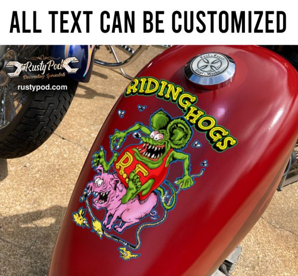 personalized rat fink and hogs motorcycle gas tank top decal 11804