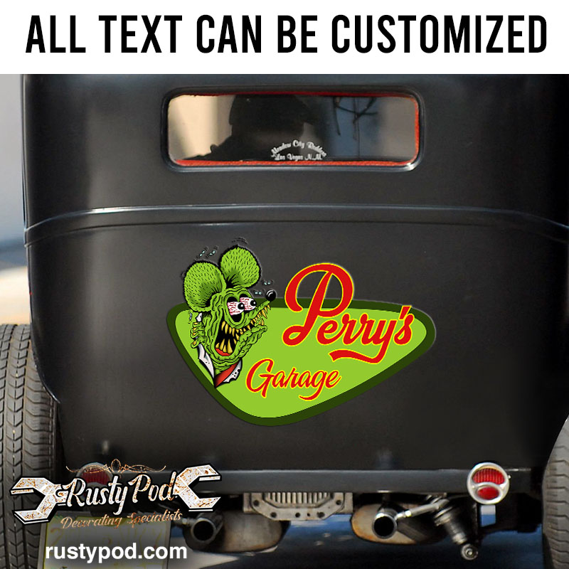 personalized rat fink garage lettering vinyl sticker 10605