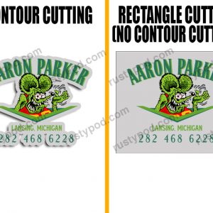 - Contour Cutting/Trim means that the decals are printed with an outline hugging the design. Meanwhile, with no contour cut, the outline will be a rectangle instead.