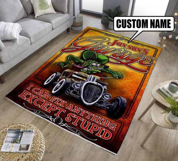 This Personalized rat fink garage rug will be a great addition to your home. This beautiful area rug is made of polypropylene, which is a material with aesthetic characteristics such as durability, resistance to static and heat, and resistance to dampness. It would be a great choice for decorating your home’s luxurious rooms.