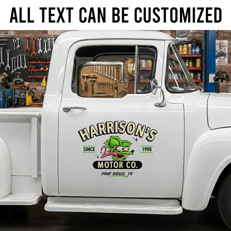 personalized rat fink hot rod lettering decal motor co sign decal shop truck door sign sticker 14052