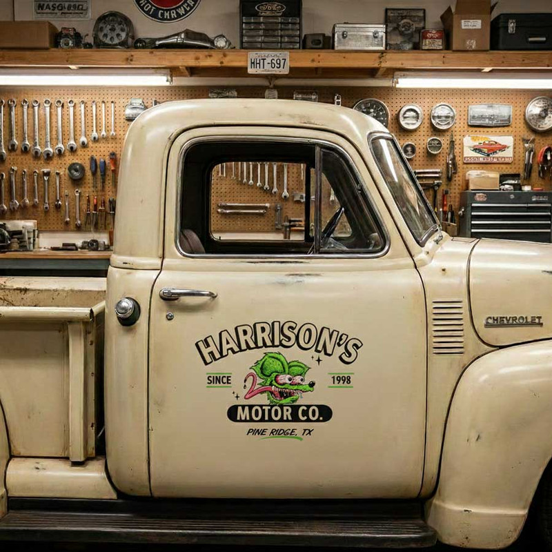 personalized rat fink hot rod lettering decal motor co sign decal shop truck door sign sticker uses UV printing technology on durable vinyl panels, offering strong resistance to environmental impacts and ensuring safety for vehicle surfaces.