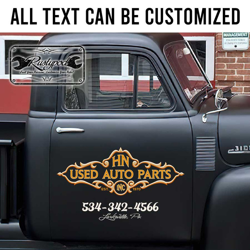 personalized retro floral garage sign used auto parts sign lettering hot rod sign farm sign sticker 13222