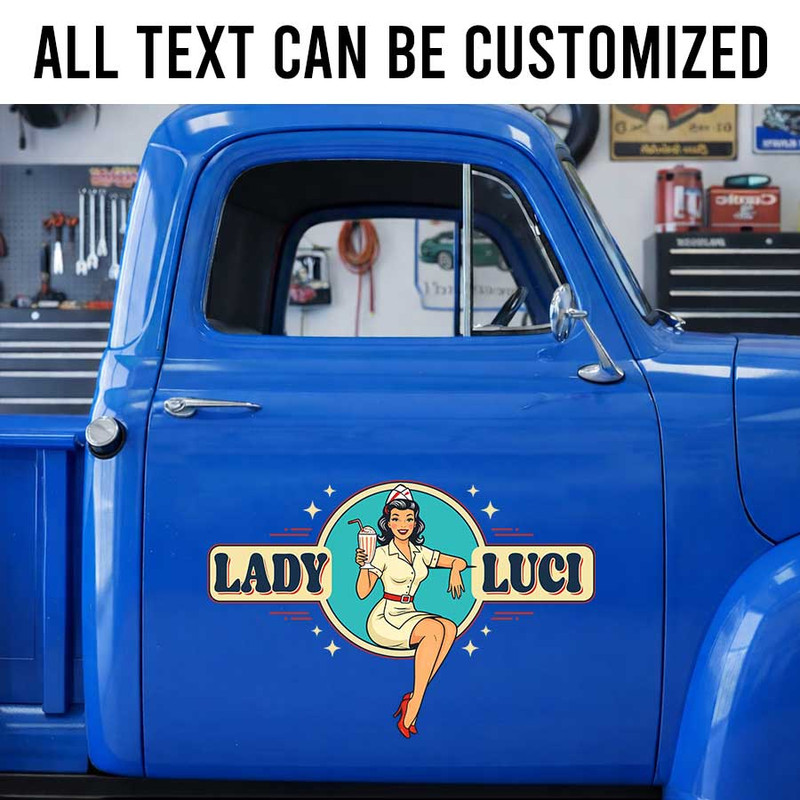 Personalized Retro Pinup Diner Truck Door Decal for Hot Rods and Shop Trucks sticker 14238