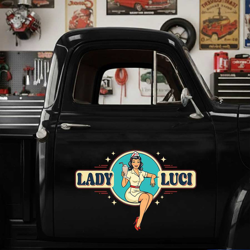 Personalized Retro Pinup Diner Truck Door Decal for Hot Rods and Shop Trucks sticker 14238 is highly recommended for everyone seeking an authentic Pinup Sticker experience. Crafted with premium materials, this product ensures top-notch quality and exceptional durability. It represents peak resilience, being engineered to resist water, intense sunlight, and demanding environmental conditions without losing its charm.