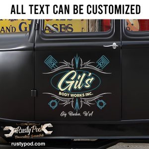 Don’t miss the opportunity to add personality and highlights to your favorite vehicle. Order the Personalized Retro Piston Pinstripe sticker 11252 now and make your car stand out from the crowd. And remember, Rustypod offers a wide range of car decals, so be sure to explore their collection for even more options to personalize your ride.