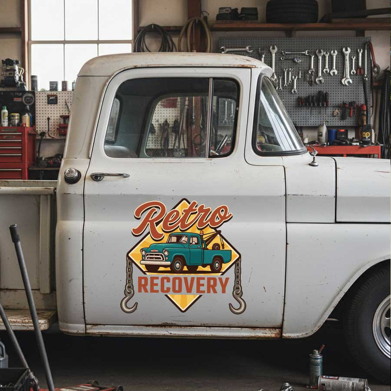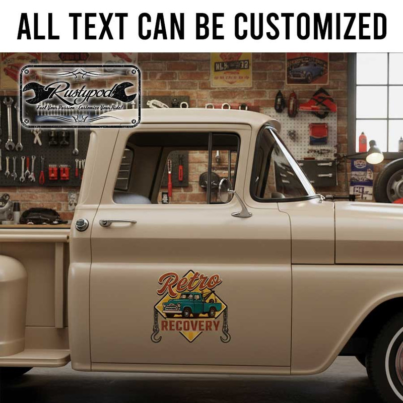 personalized retro recovery company lettering decal towing company lettering decal truck graphics sticker utilizes advanced UV printing technology on high-quality vinyl panels, ensuring vivid colors and outstanding durability. The decal boasts excellent resistance to environmental impacts such as sunlight, rain, and scratches, and is completely safe for all vehicle surfaces. Application is quick and hassle-free, making it perfect for both personal and business use. We offer customization according to your unique requirements and provide a contour cut option to remove excess material, creating a painted-on appearance for your sticker. Our products are ideal for cars, motorbikes, glass doors, and more, perfectly suited for showcasing personality or advertising your brand.