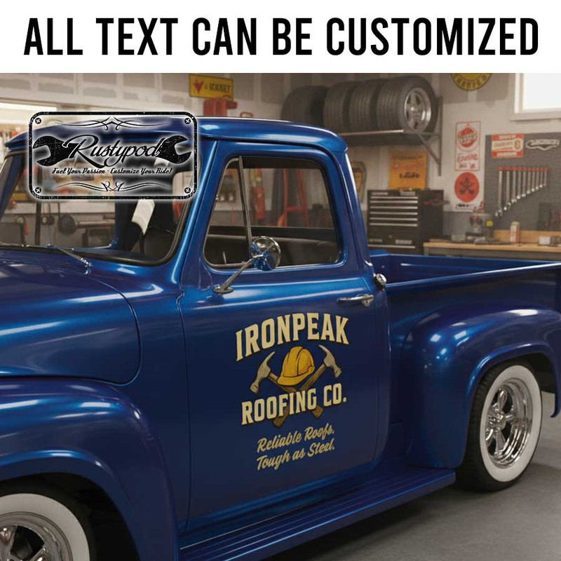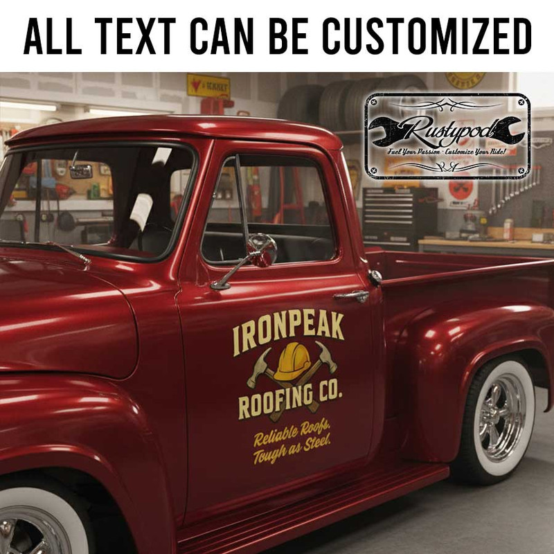 personalized roofing company lettering decal hammer logo lettering decal vehicle lettering sticker is produced using advanced UV printing technology on high-quality vinyl panels, ensuring superior durability and vibrant colors. This product is designed to resist various environmental impacts, providing long-lasting performance even under harsh conditions. It is safe for all vehicle surfaces and exceptionally easy to apply, making it suitable for both beginners and professionals.