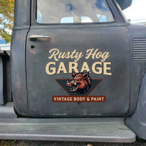 personalized rusty hog garage sign hot rod garage lettering decal kustom kulture sticker 13887