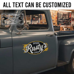 personalized rusty shop lettering decal hot rod lettering decal sticker for patina truck shop sticker 14002