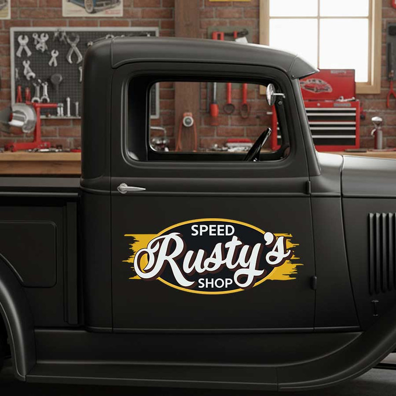 personalized rusty shop lettering decal hot rod lettering decal sticker for patina truck shop sticker utilizes advanced UV printing technology on durable vinyl panels, ensuring high durability and exceptional resistance to environmental impacts. Our stickers are safe for vehicle surfaces and incredibly easy to apply. Each design is fully customizable to meet your unique requirements, and you can choose the contour cut option to eliminate excess decal, giving your sticker a seamless, painted-on look. These decals are suitable for cars, motorbikes, glass doors, and more—perfect for expressing your personality or advertising your brand.