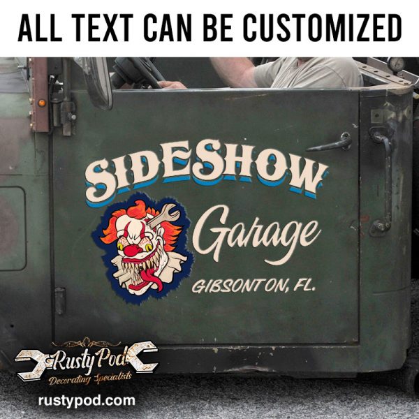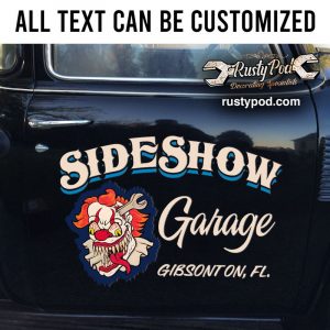 Be the first to review “personalized sideshow garage lettering vinyl sticker 10493”