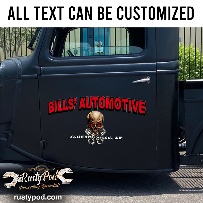 Add personality and highlights to your favorite vehicle with our personalized skull and crossing cylinder lettering vinyl sticker 10873. Made of high-quality materials, it is waterproof and can withstand harsh weather conditions such as rain or direct sunlight.
