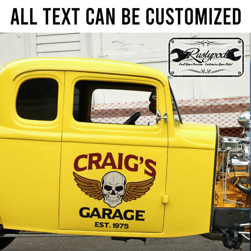 personalized skull and wing shop truck lettering hot rod lettering car lettering sticker 13255