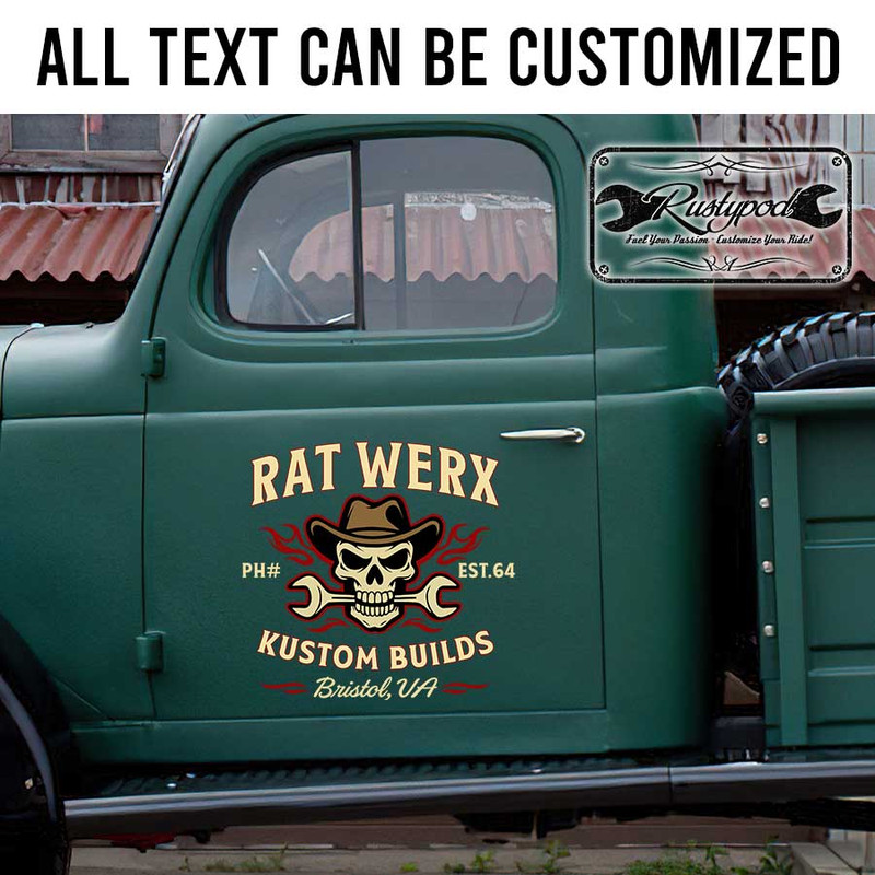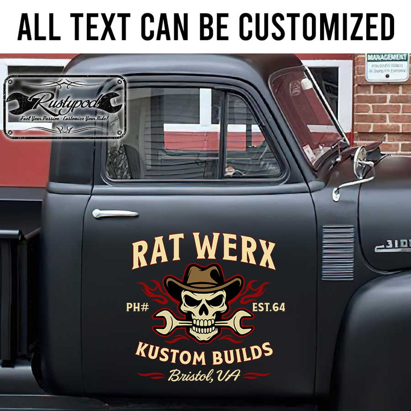 personalized skull and wrench lettering gasser garage door art sticker 13242