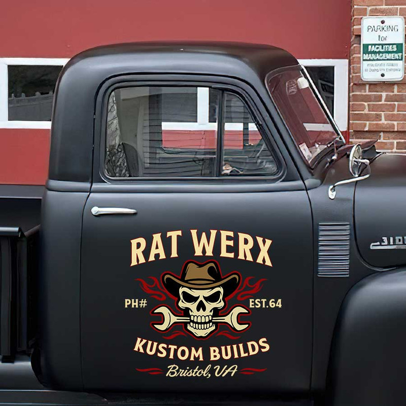 personalized skull and wrench lettering gasser garage door art sticker uses advanced UV printing technology on durable vinyl panels. This ensures high durability and strong resistance to environmental impacts.