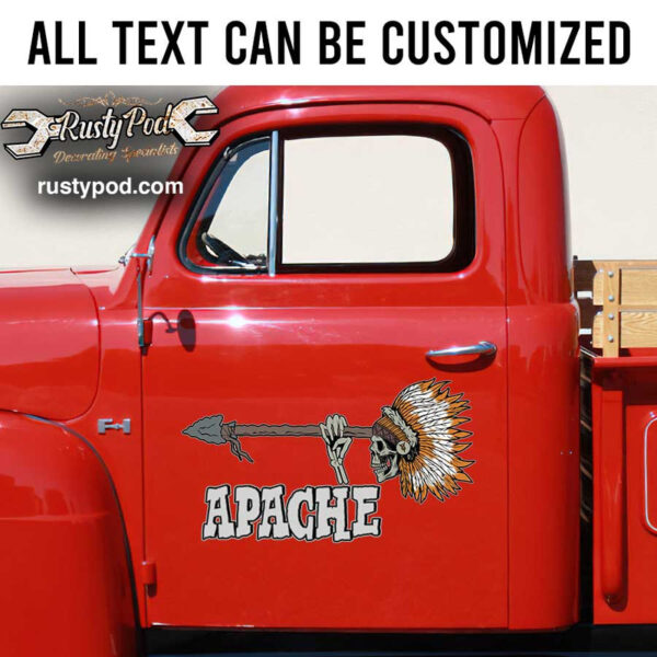 personalized skull chief for rusty truck old school hot rod lettering rat rod door hand paint sticker 12339