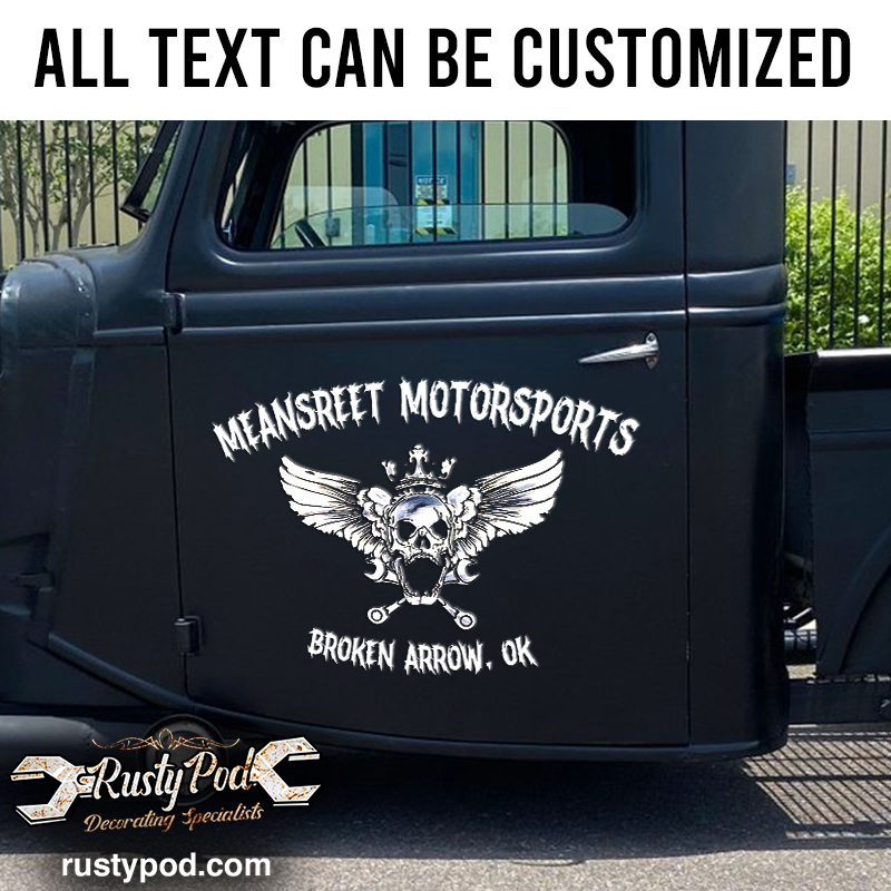 The Personalized Skull Crossing Wrench and Wings Vinyl Sticker 10863 is perfect for applying to various surfaces such as laptops, cars, motorcycles, or any surface you want to customize and showcase your love for the biker lifestyle.