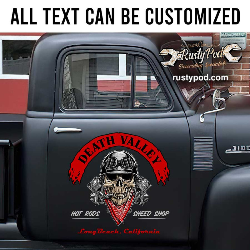 personalized skull death valley hot rods and speed shop pinstriping kustom kulture sticker 12752