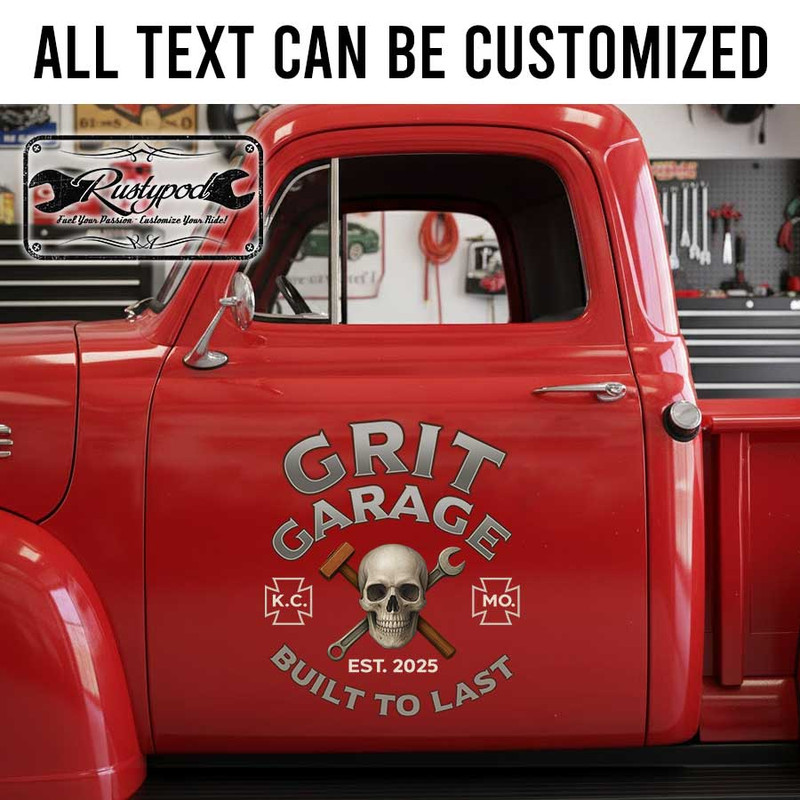 personalized skull hammer and wrench lettering decal hot rod lettering decal iron cross lettering decal sticker utilizes advanced UV printing technology on premium vinyl panels, ensuring exceptional durability and long-lasting colors. This product boasts excellent resistance to harsh environmental impacts, maintaining its vibrant look over time. It is entirely safe for all vehicle surfaces and can be applied with ease by anyone.