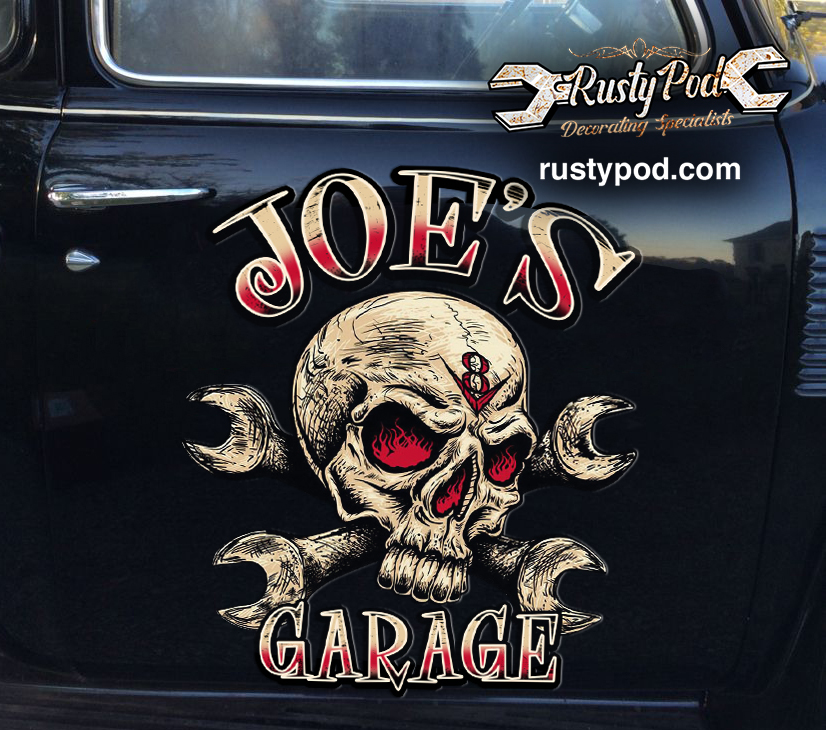 Order Personalized skull hot rod lettering vinyl sticker now!