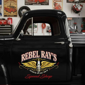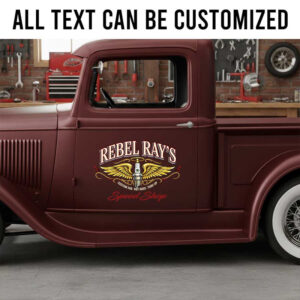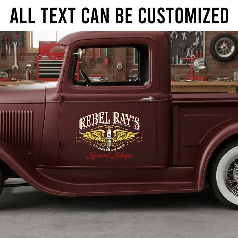 personalized spark plug lettering decal performance build garage lettering decal kustom kulture decal shop truck door sign sticker uses UV printing technology on durable vinyl panels, offering strong resistance to environmental impacts and ensuring safety for vehicle surfaces.