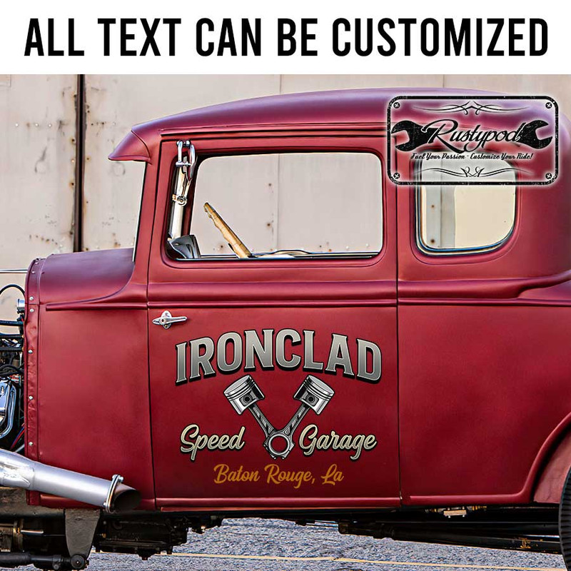 personalized speed shop decal v8 piston logo decal hot rod garage sign decal kustom kulture sticker 13757