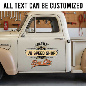 Personalized Speed Shop Door Decal for Hot Rod Builders Mechanics and Shop Trucks sticker 14261 acts as the ultimate highlight for your gear head sticker style collection. Thanks to our superior material selection, enjoy unparalleled ruggedness and long-lasting quality. Whether indoors or outdoors, it easily stands strong against water damage, sunlight fading, and general environmental exposure.