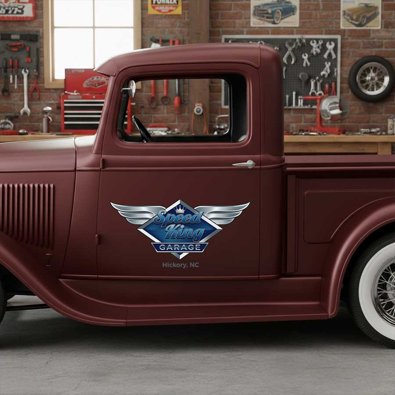 personalized speed shop garage sign decal speed shop door art decal car lettering sticker uses UV printing technology on durable vinyl panels, offering strong resistance to environmental impacts and ensuring safety for vehicle surfaces.