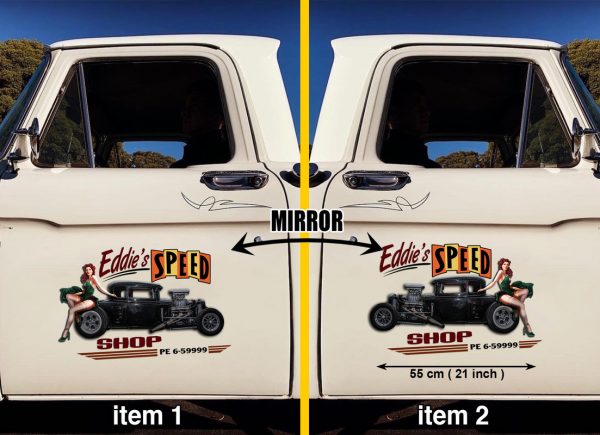 Be the first to review “2 PCS personalized Speed Shop | Hot Rod vinyl stickers 09483”